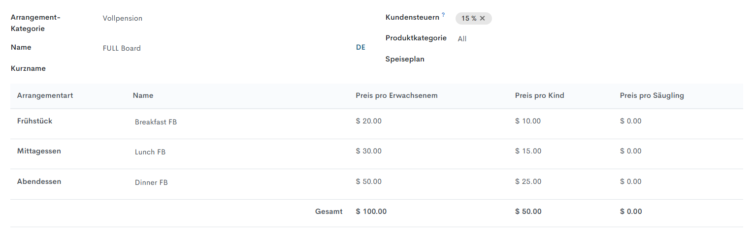Im System ist das Arrangement Vollpension (FULL Board) verfügbar: