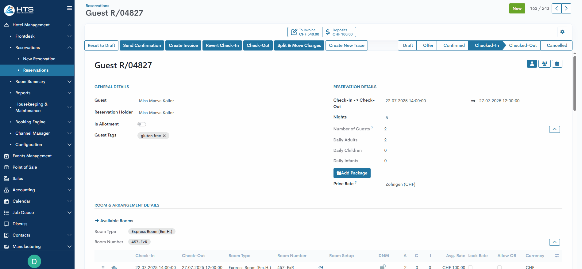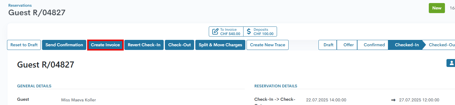 - der Status der einzelnen Reservation "Bestätigt" oder "Checked-In" ist;