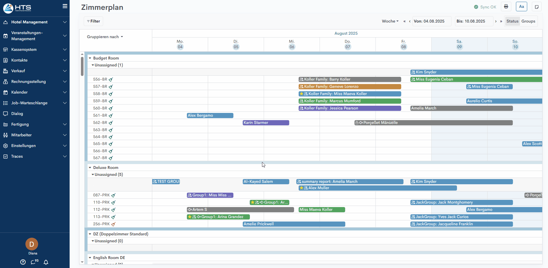 - Gruppenaufenthalt - Abschnitt für Gruppenbuchungen und Gästereservationen, die Teil einer Gruppe sind.