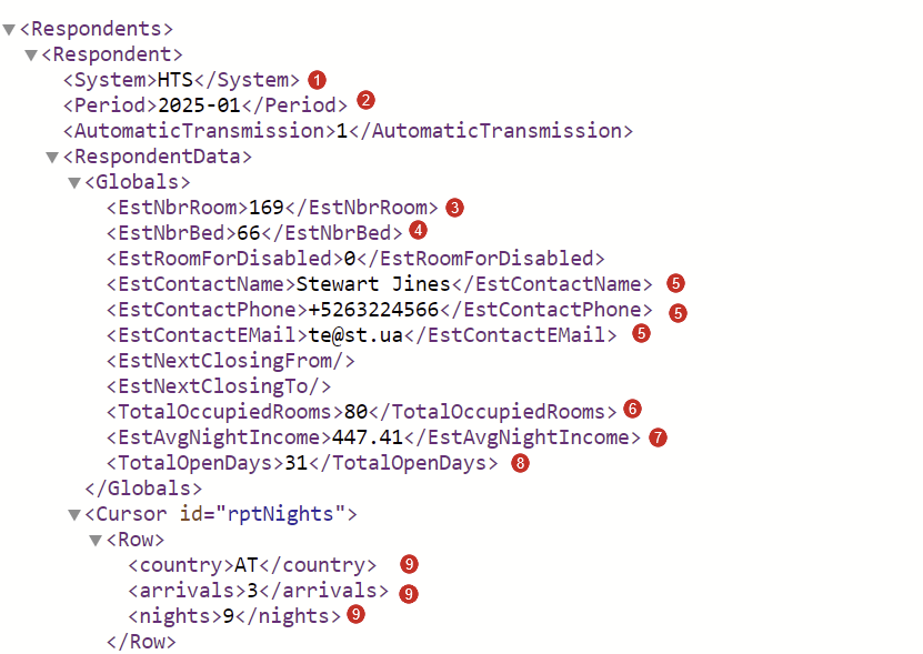 - TotalOpenDays - Anzahl der Öffnungstage im Referenzmonat, basierend auf dem Berichtszeitraum. Zum Beispiel: Wenn der Zeitraum vom 01.01.2025 bis zum 31.01.2025 ist, beträgt die Anzahl der Öffnungstage 31.