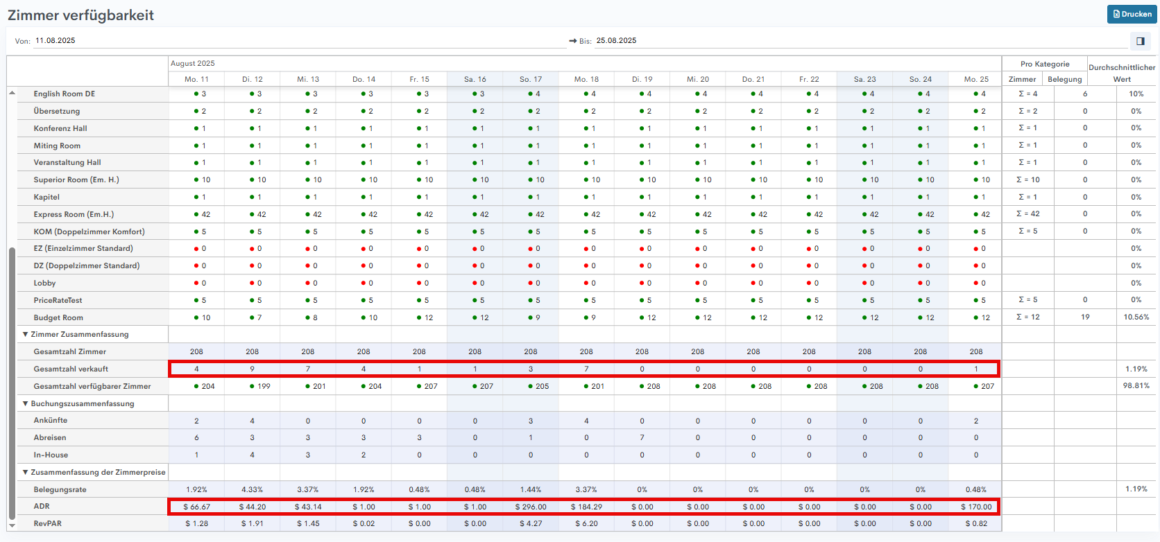 - TotalOccupiedRooms - Gesamtzahl der Zimmer, die im angegebenen Zeitraum belegt waren.