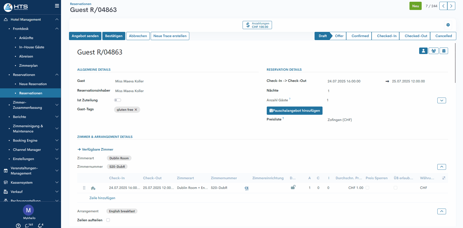 - Öffnen Sie das Modul Hotel Management