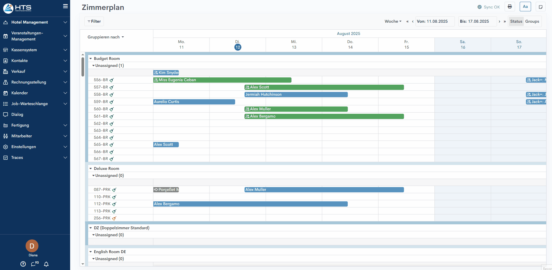 - Gast - der Gästenamen einer bestimmten Reservation;