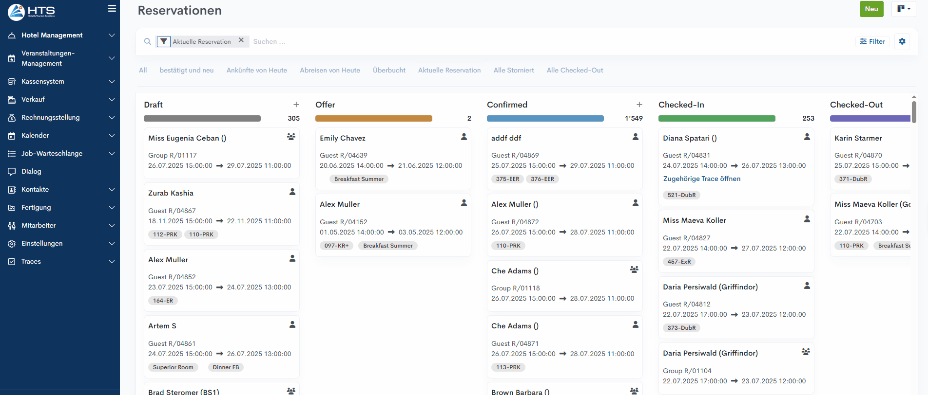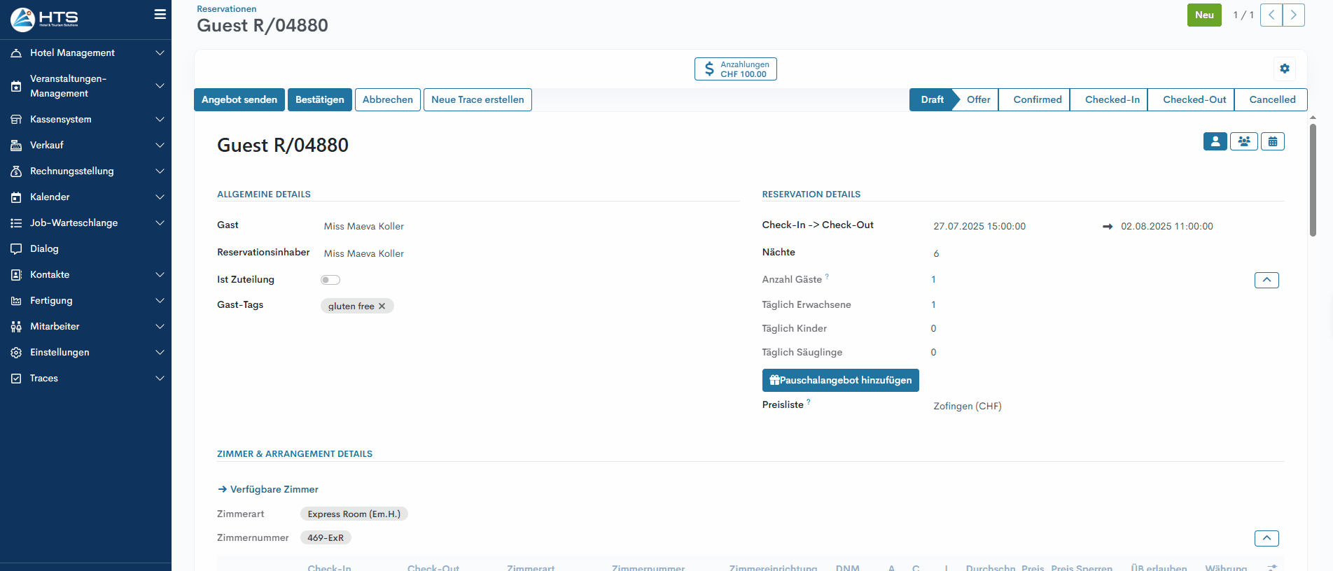 Anzeige in der Reservationsübersicht