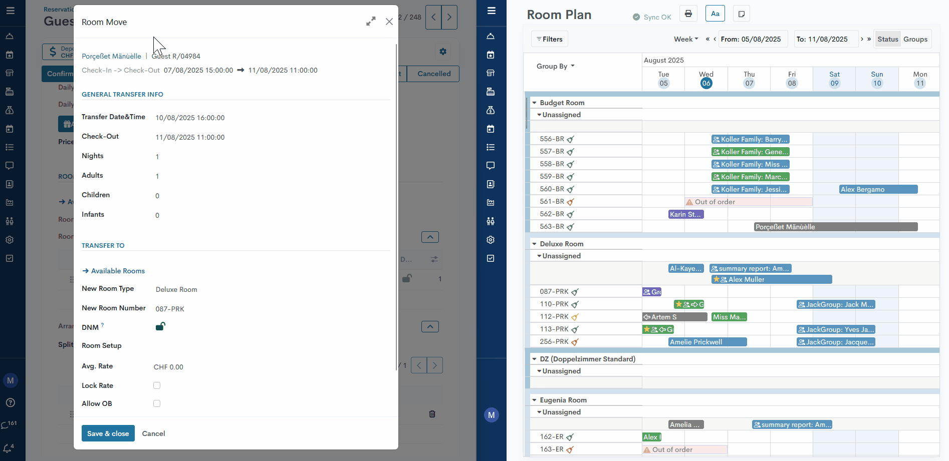- Room Move - when a guest is relocated during their reservation period or continues their stay in a different room after check-out.