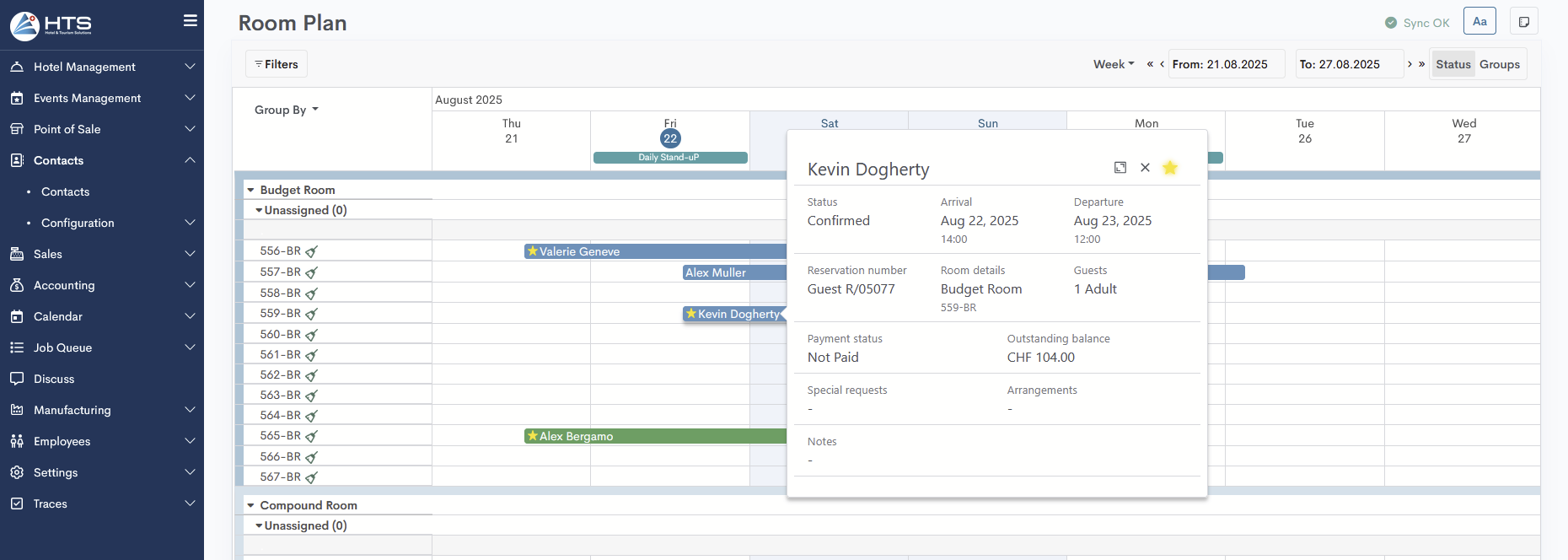 Also, Live Updates work for all fields that are present in the reservation pop-up on the room plan - status, reservation dates, room details, etc.