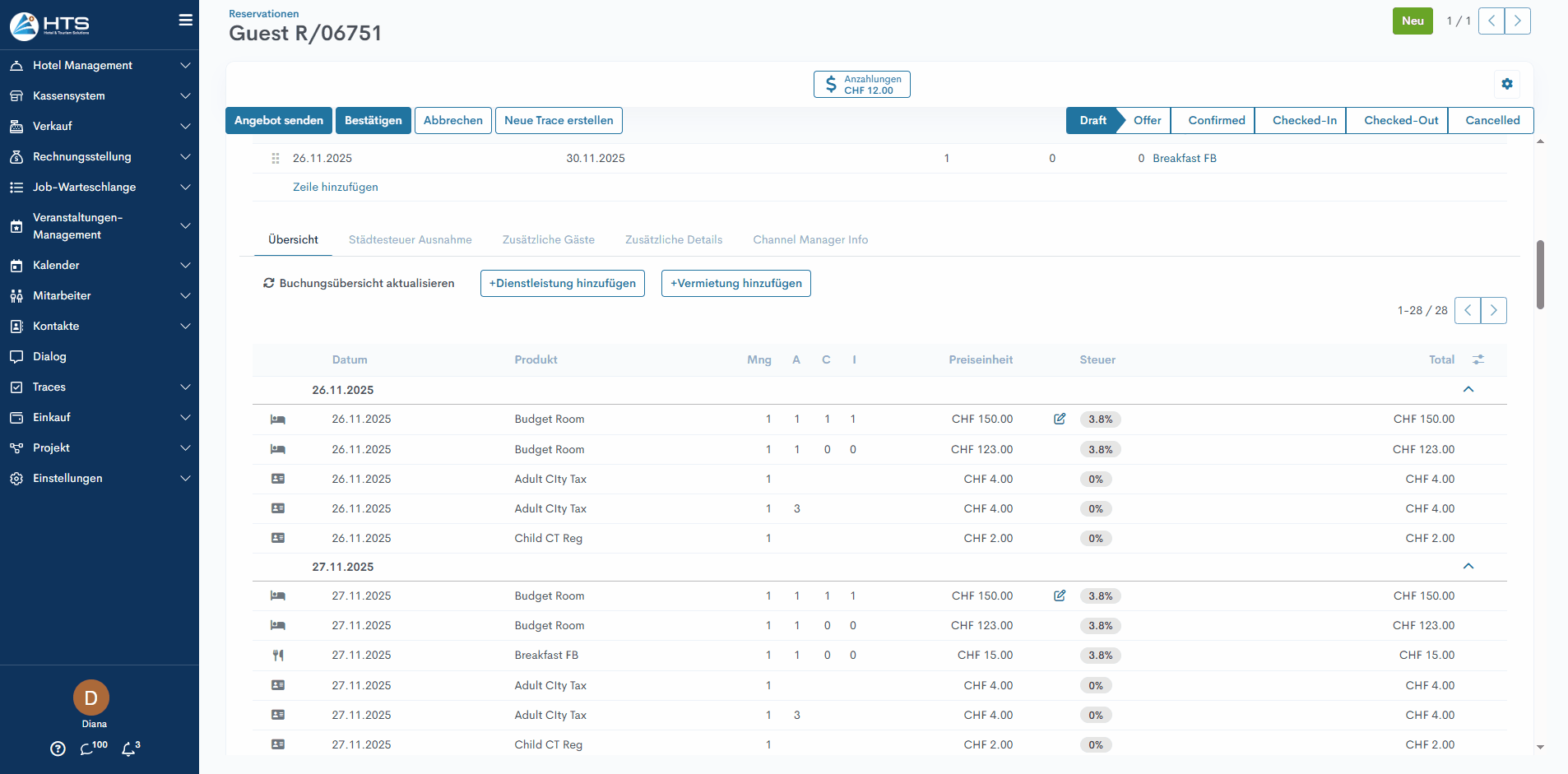 - Öffnen Sie eine bestehende Reservation oder erstellen Sie eine neue.