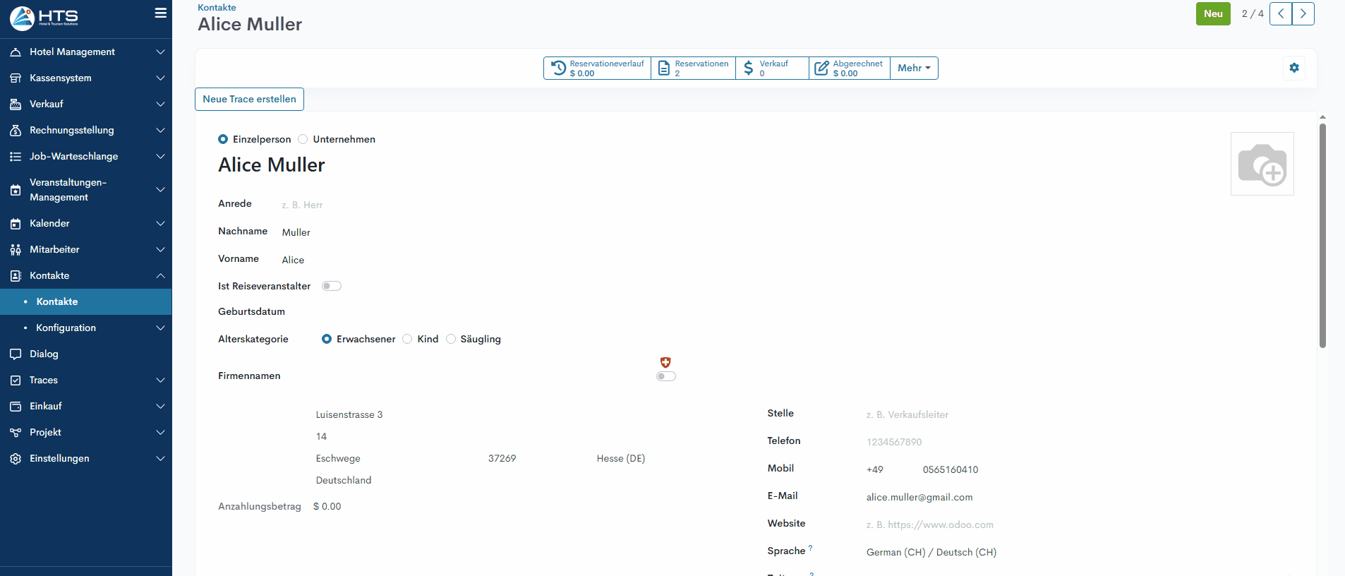Zusätzlich fügt das System alle während des Self Check-In angegebenen Informationen – wie Adresse, Telefonnummer und Fahrzeugdetails – dem entsprechenden Kontakt-Datensatz hinzu.