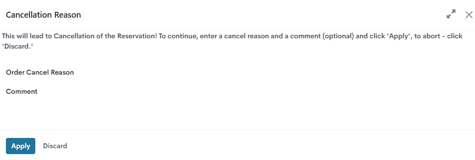 - Wählen Sie in einem neuen Pop-up-Fenster einen der verfügbaren Stornogründe aus, fügen Sie einen Kommentar hinzu (optional) und klicken Sie auf „Übernehmen“;
