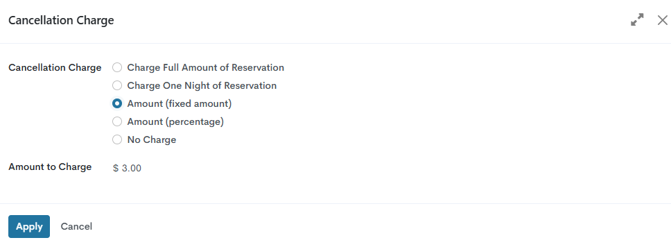 - Betrag (fester Betrag) - nach Auswahl dieser Option sollte der gewünschte Betrag in das Feld „Zu berechnender Betrag“ als Stornogebühr eingegeben werden;