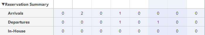 - Abreisen - die Anzahl der Reservationen im Status "Checked-In", bei denen das Datum des Check-Outs gleich dem entsprechenden Datum ist;