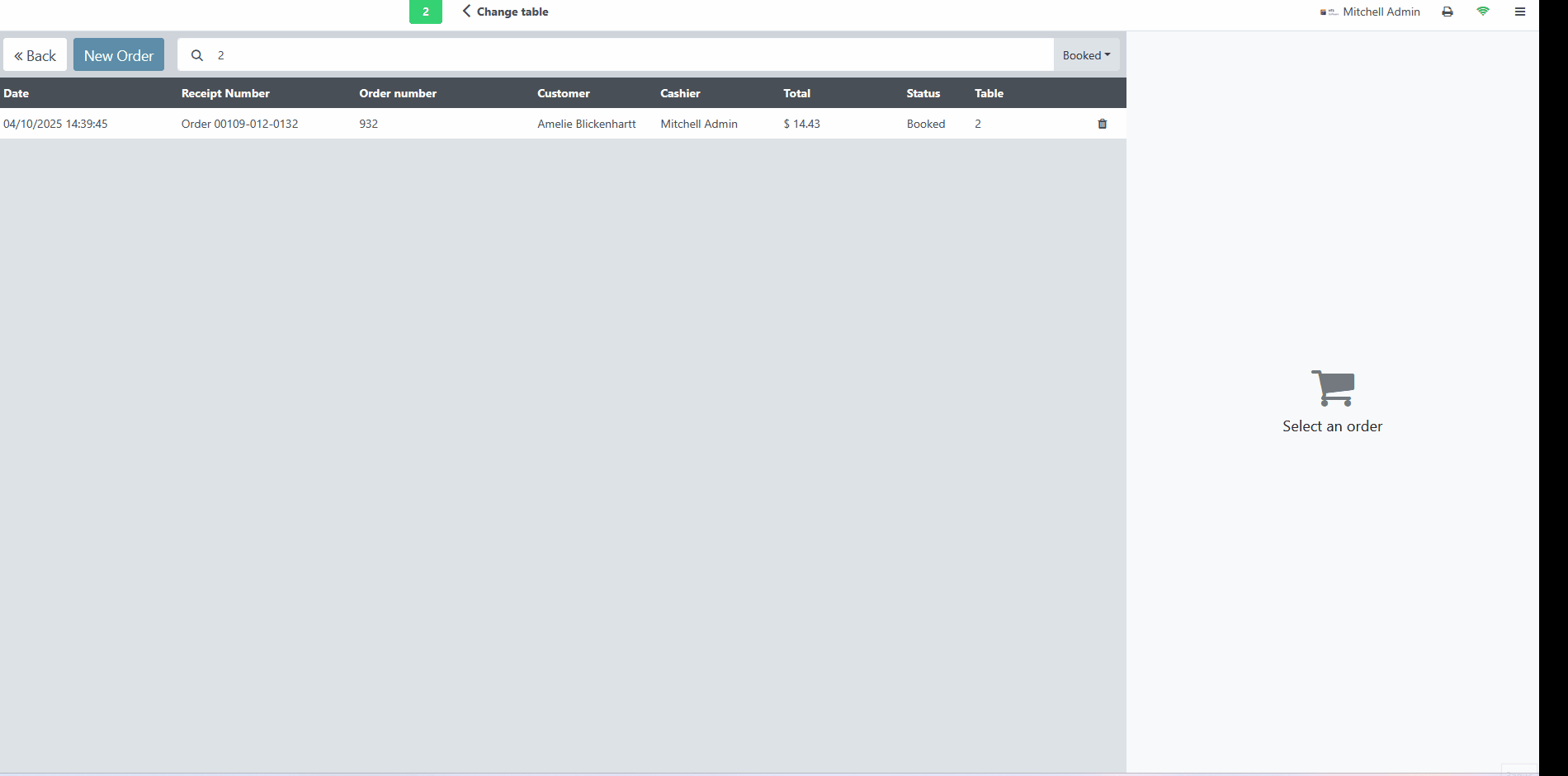 Nachdem die Bestellung auf die ausgewählte Reservation gebucht wurde, hat diese Bestellung im Modul «Kassensystem» den Status «Zur Reservation gebucht».