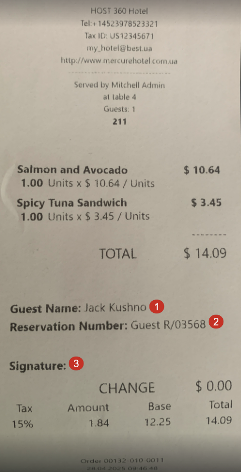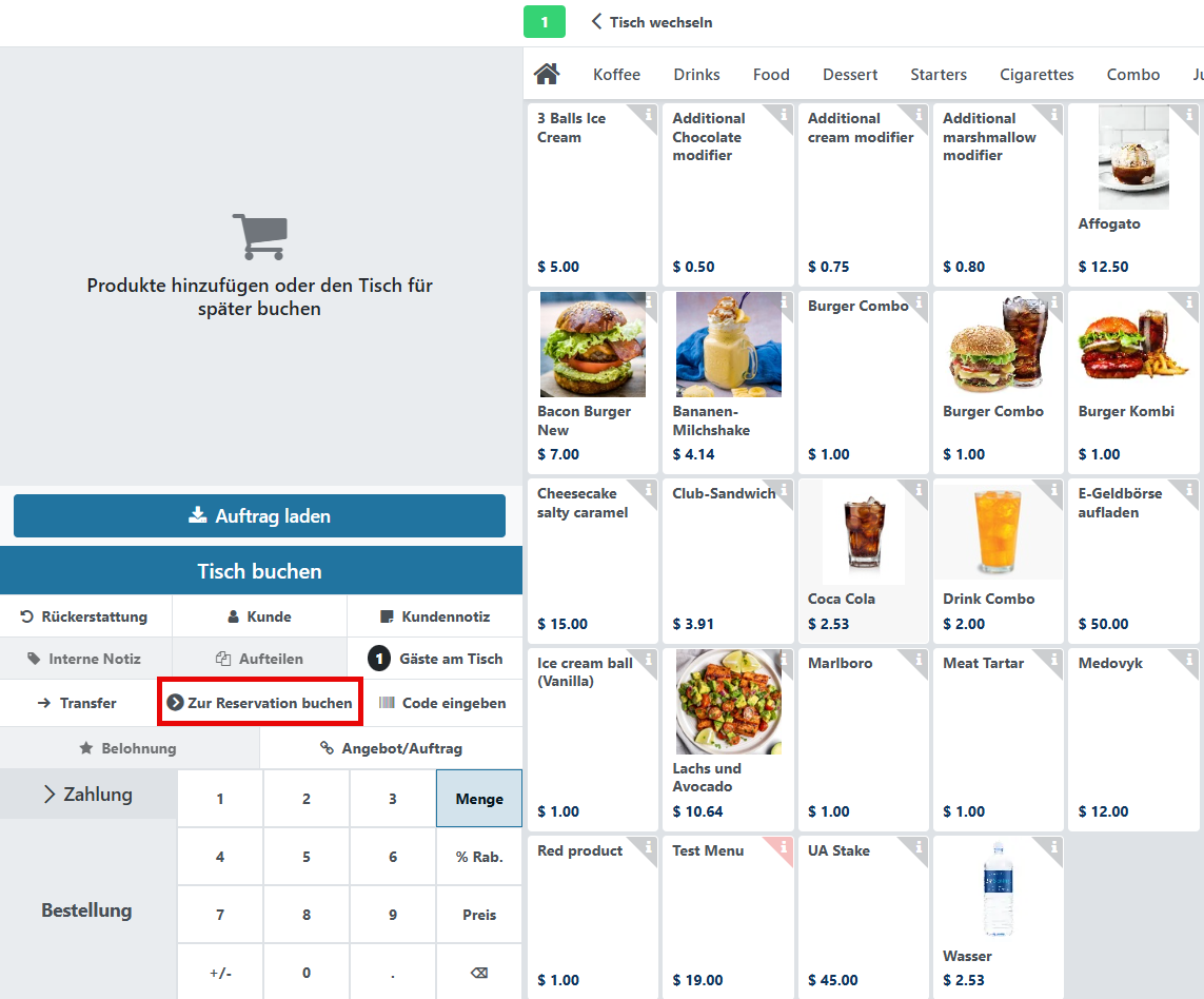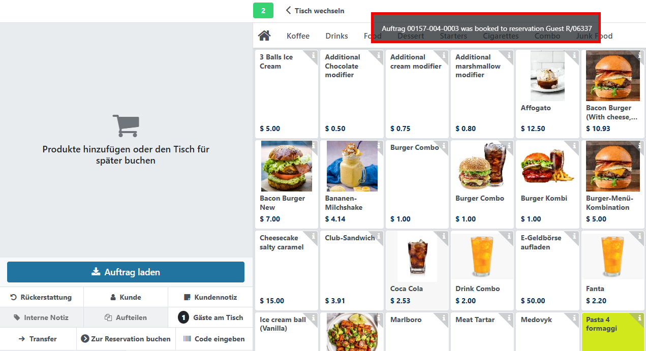 - Reservationsname – die Reservationsnummer, auf die die Kassensystem-Bestellung gebucht wurde.