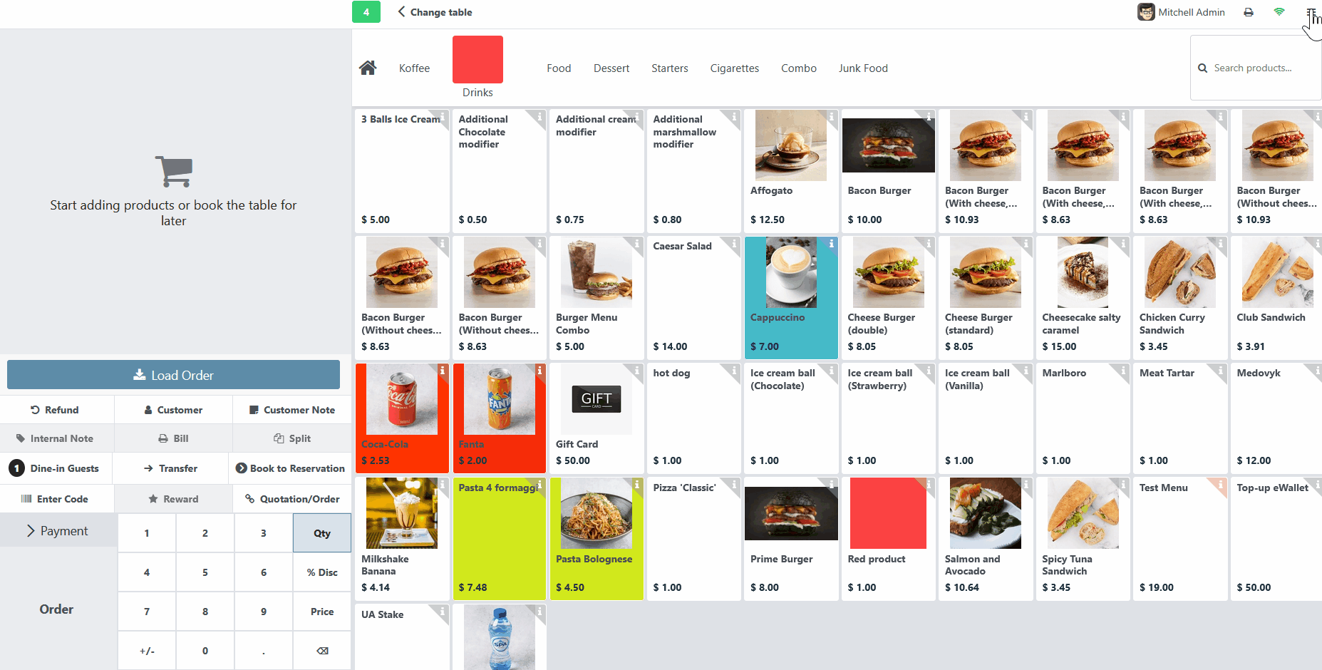 Wenn Sie mehrmals auf dasselbe Produkt klicken, erhöht sich die Menge in der Bestellung entsprechend der Anzahl Klicks.