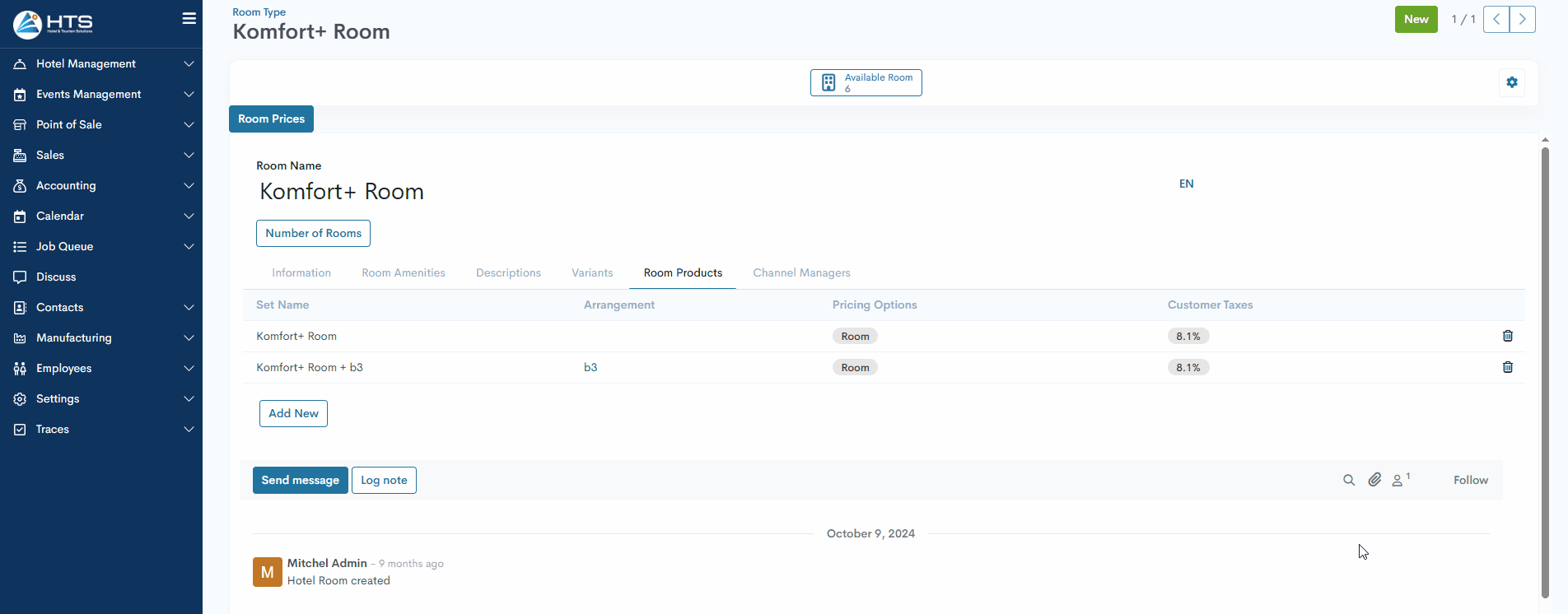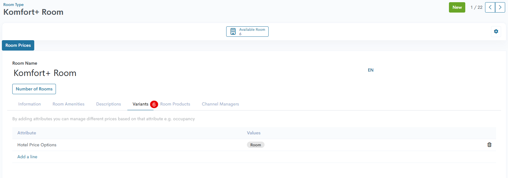 Nach dem Erstellen und Konfigurieren der Preisoptionen für Hotelzimmer besteht der nächste Schritt darin, die in der Hotel-Management verfügbaren Zimmerarten weiter anzupassen.