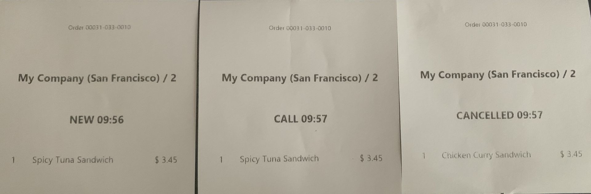 Das Küchen- bzw. Barteam erhält für diese Bestellung einen neuen gedruckten Beleg mit den Artikeln, die für den Gast serviert werden müssen.