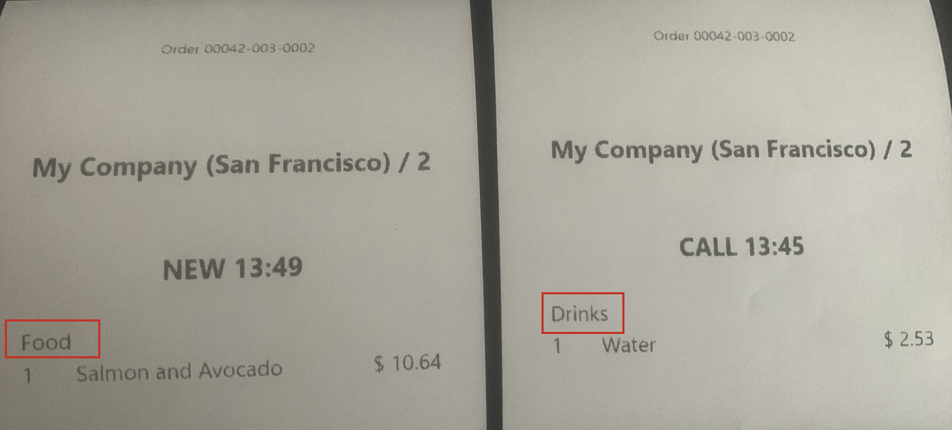 Wenn das Kontrollkästchen «Separate Quittung pro Kategorie» aktiviert ist, werden alle Artikel, die zur selben Produktkategorie im Kassensystem gehören, auf einem separaten Küchenbeleg gedruckt.
