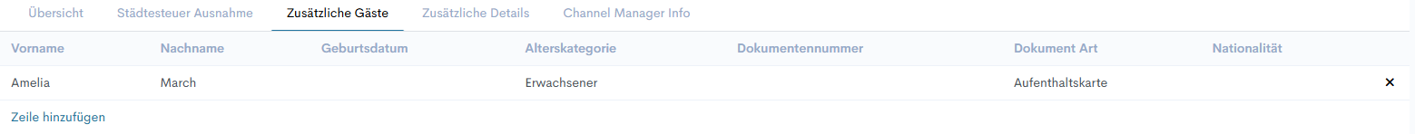 - Auf der Registerkarte 'Zusätzliche Gäste' könnte eine Empfangsdame Informationen über die Mitbewohner bereitstellen - Name, Alter, Dokumentinformationen usw.