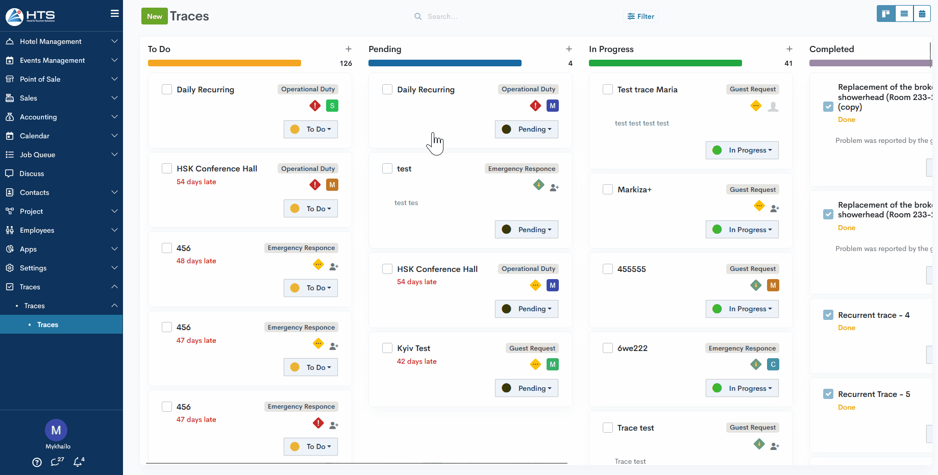 - Completion checkbox – allows users to mark a trace as completed from any status, without opening the full form.