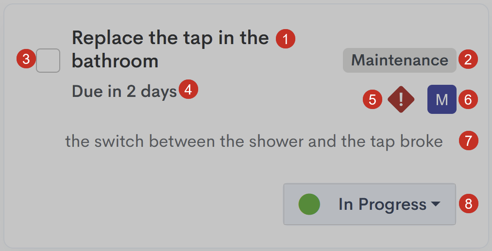- Category (for example, Operational Duty, Maintenance, Guest Request)