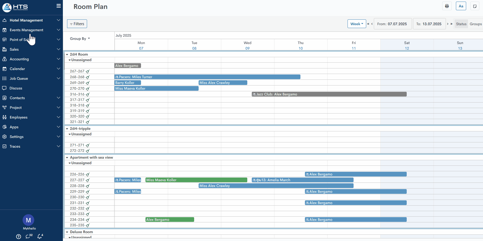 In the Traces List view, when multiple traces are selected, the system allows users to print a List of Traces. This printout includes the same columns as shown in the table (e.g., trace name, status, due date, etc.). Additionally, the list contains the date and time of printing at the top, as well as the hotel's contact information at the bottom of the page.