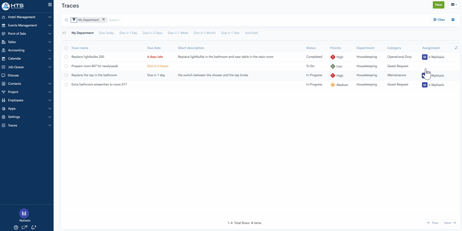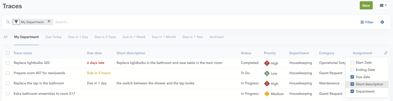 • My Department (applied by default, showing only Traces assigned to the user's department)