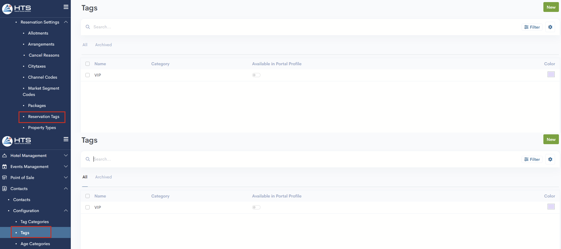 Our system allows you to mark a guest’s profile or a specific reservation as VIP. In the Contacts module, there is a VIP tag, and similarly, in the Hotel Management module, the VIP tag is available under Reservation tags. These tags cannot be deleted or archived, ensuring the VIP status is always clearly visible and maintained throughout the system.